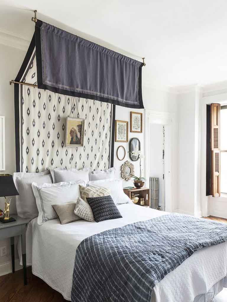You can create a grand impression like a royal look by using this style. Choose dominance of white and gold, by using wallpaper that is solid and not full of color. You can use gray and add some classic ornaments but don’t make the room feel narrow. You will still get a calm yet majestic impression with this style. Your bedroom will be boosted in the room’s serene but still, have a regal appeal look. Now, you can make wall mounted bed canopy with whatever style.