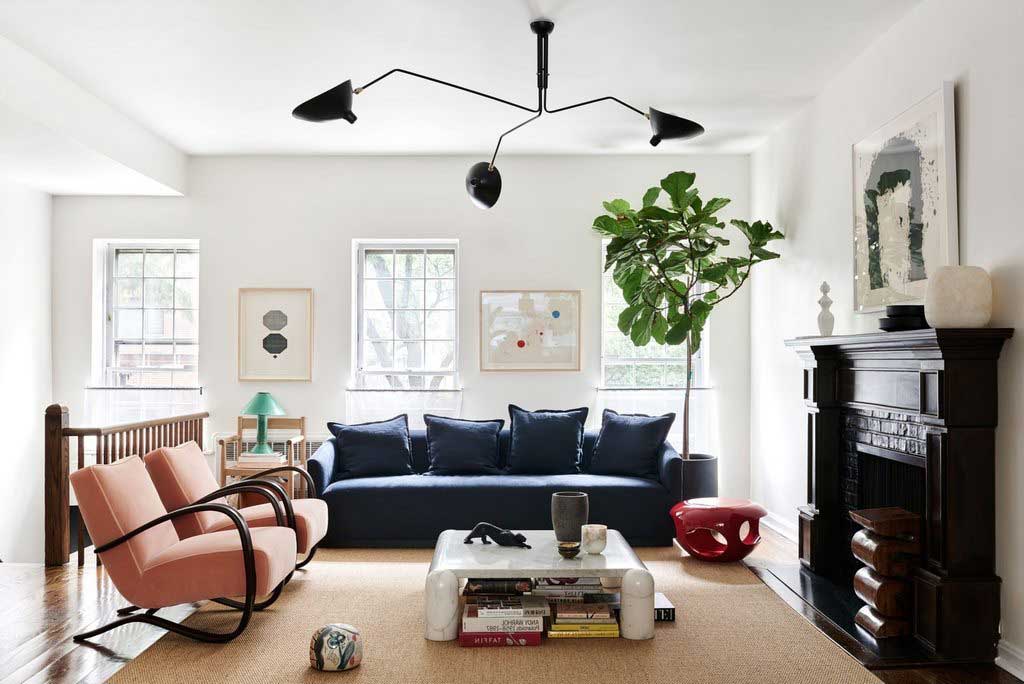 Do you want to go a little glam without looking too magnificent? Add in trifling brass accents, like a metal-frame coffee table and attention-grabbing metallic lights. Your living room will have the best appeal if you choose a good blueprint for small space decorating. While the only three furniture items are two seats, the ceiling light is all it takes to make the entire room feel superior.