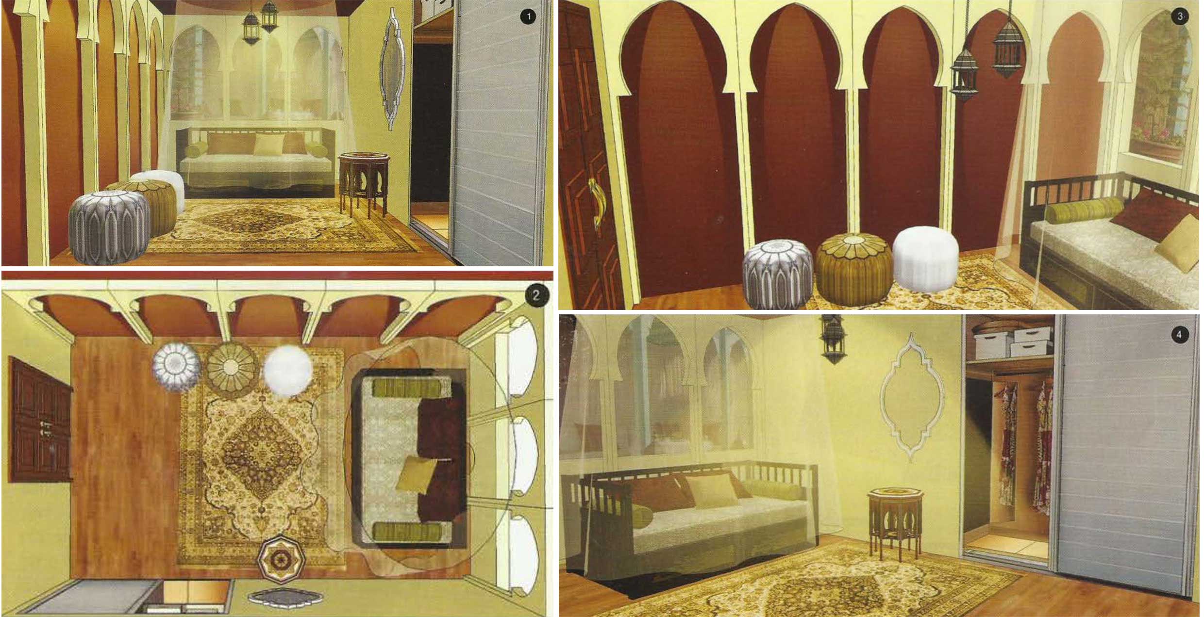 In this article, we will give an example about the processing of wallcovering material that can give a dimensional look. The material used is wood panels. In this design, we will take the essence of the Moroccan style which will be applied to the bedroom.
