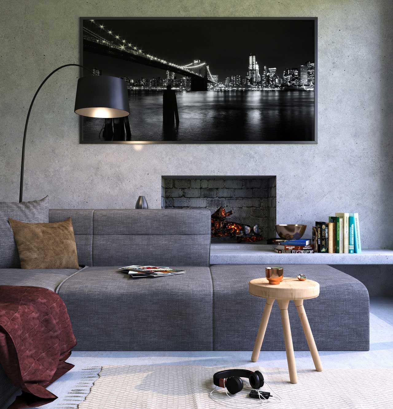 Impressionist style paintings are the most appropriate to decorate your living room. Impressionist paintings have an effect to arouse the emotions/expressions to the occupants or guests when visiting your home. The painting frame must also be adjusted to the living room furniture. The square frame is the most proportional choice because the wall contours are generally flat and have square frames as well. Except for round or polka-dot wall contours, you should use rounded or oval frames too.