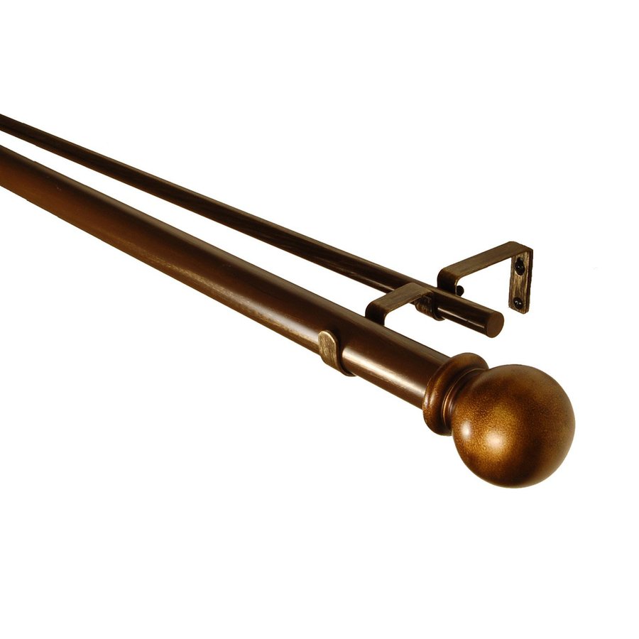 - A 1/2″, 48″ long dowel rod (found in the solid wood trim area of Lowes or HD, or even at craft shops) is no more than $2 each. Spray painted – BOOM – instant gold double curtain rod brackets. Congratulations , you just need to determine what you need for a finial for the end, which means your drapes do not slip away.