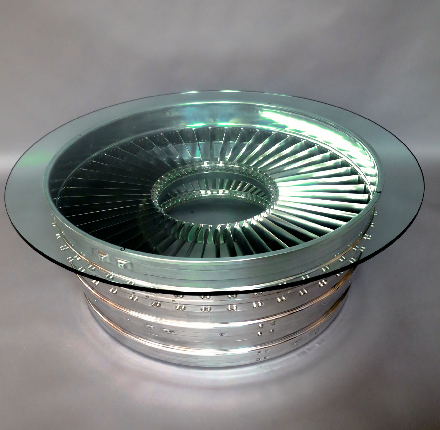 This airplane coffee table or cocktail table is perfect airplane furniture for any aviation themed room. Of course, it is an ideal gift for a pilot or for decorating an aviator man cave. We also think that this airplane wing coffee table is so cool that anyone would delight in its unique airplane propeller coffee table design. The airplane coffee table uses a wood and mdf base for the cocktail table. The wood outline is then shrouded in sheeted aluminum, and to finish the bona fide flight look completed with bolts. This airplane metal coffee table will definitely add some high flyin’ design to your living space. Sorry the air crew to bring coffee is not included. He thinks it looks fabulous and so do we! This custom airplane wing coffee table is a perfect fit for his beautiful home.