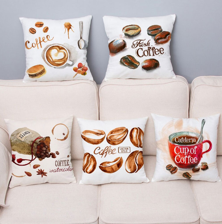 Throw pillows are the easiest way to freshen up the living room or bedroom spot. Introducing a coffee theme in new colors, shapes, and sizes with a throw pillow can make the whole space feel new fangled again. Also, this idea is perfect for people who like the simple decoration in their houses.