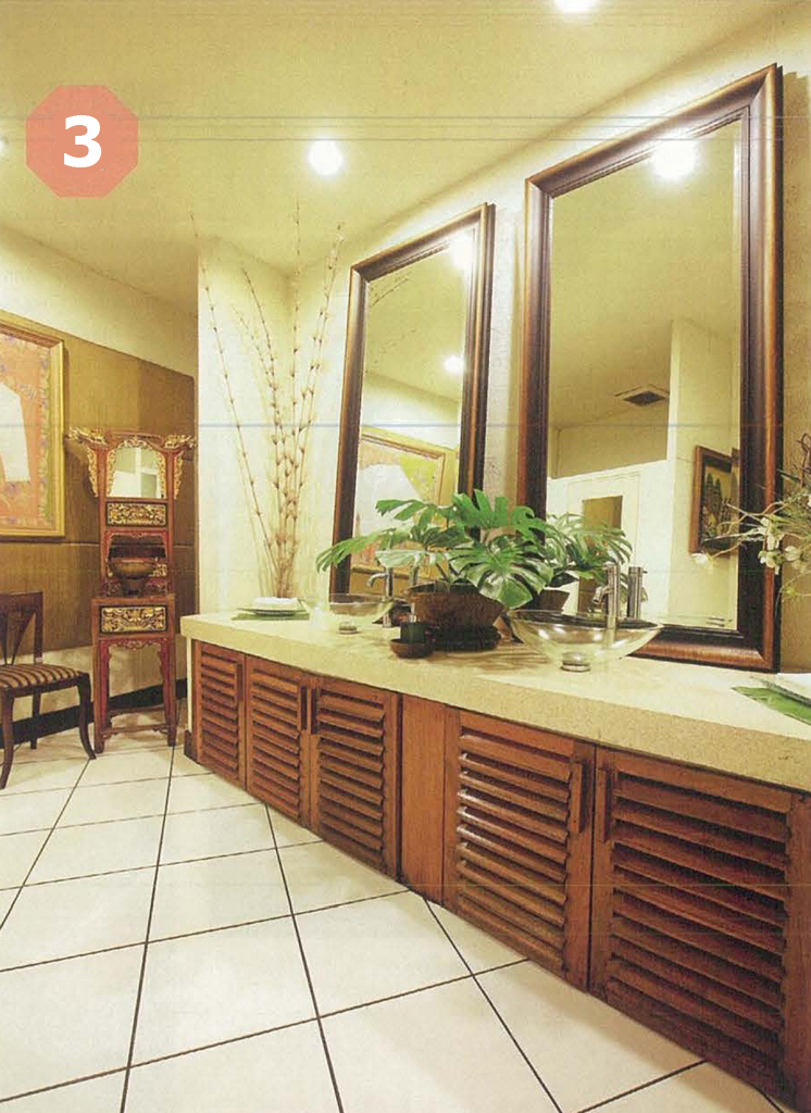 If the storage space is quite large as in this inspiration, we can also make shelves and arrange various toiletries such as stock of soap or clean towels. Traditional wooden doors with louvre, or slanted lattices, will prevent moisture in the closet.