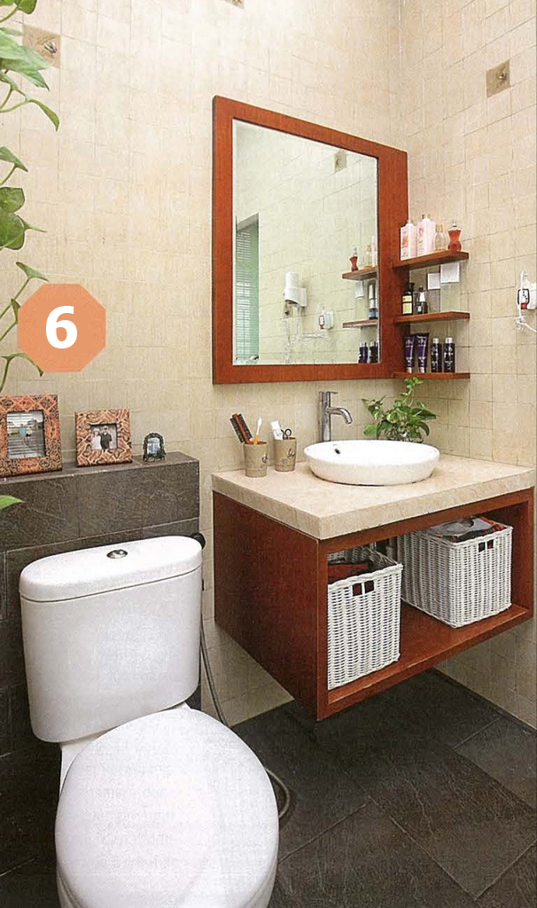 You can make furniture become multifunctional, what most people do is create storage space under the sink table. You can also make storage space behind a mirror, or even on the wall area that has a niche.