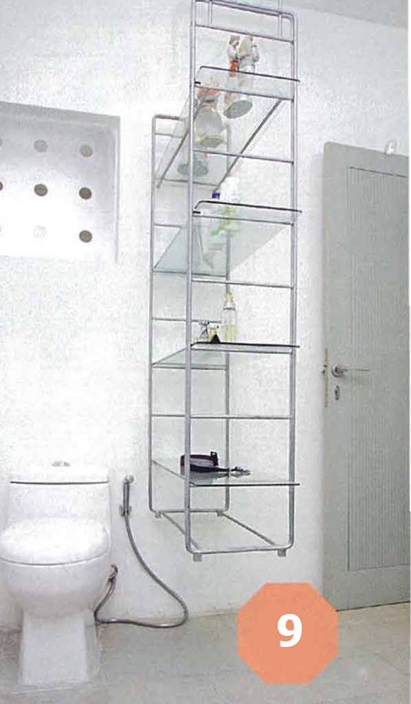 Hanging this shelf so that the “legs” do not touch the floor is the solution to solve this problem so that the bathroom space does not seem narrow because of the iron shelf presence. In each of the shelves, various accessories and bathroom utensils are placed.