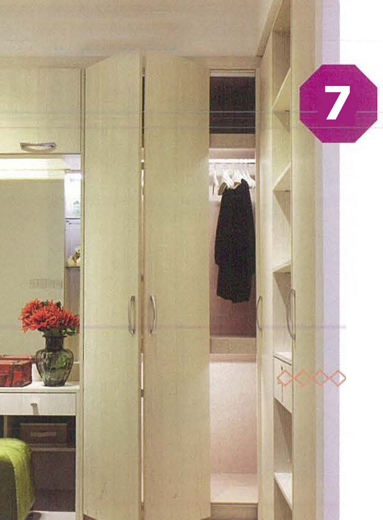 Small bedrooms often make it difficult for you to design a closet. Especially if the closet is L-shaped, the corner area will make it difficult for you to access from both directions. For this reason, try designing a door closet with a sliding system. This system will make it easier for you to open and close the closet. In addition, the door closet that can be folded out will certainly make it easier for you to access the closet on different sides. This design will feel simple for a small and limited bedroom area.
