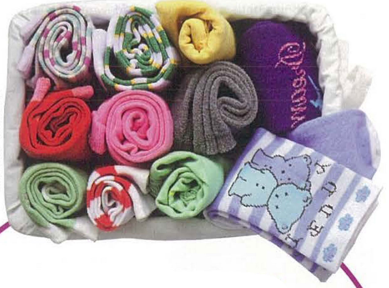 Ini adalah salah satu cara untuk menyimpan kaus kaki yang dapat kita terapkan. Lipat satu pasang kaus kaki, roll mereka, kemudian menempatkan mereka dalam wadah keranjang cantik. Kita bisa mengelompokkan kaus kaki sesuai warna atau bahkan menyimpannya secara acak. Semuanya tergantung pada selera. Tempatkan wadah ini dalam laci atau lemari, sehingga kaus kaki tidak tersebar di mana-mana.