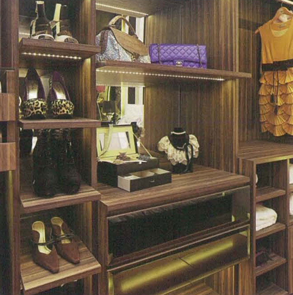 - Favorite shoes displayed nicely in the gallery, lined up vertically in the middle of the closet. There is an advantage in this arrangement because it makes it easier for the owner to mix and match the clothes he chooses.