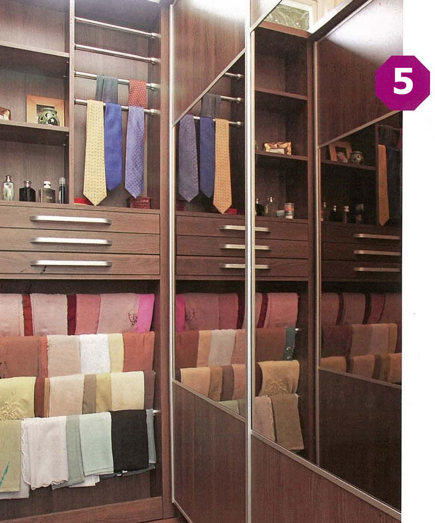 The wardrobe is not only used to store everyday clothes, but also storage places for a variety of complementary accessories such as ties, scarves, waistbands, and shoes. To keep your accessories collection neat and beautiful, provide a special storage area consisting of multifunctional hanging poles. This aluminum pole can be used to hang various dangling accessories, such as ties and scarves.