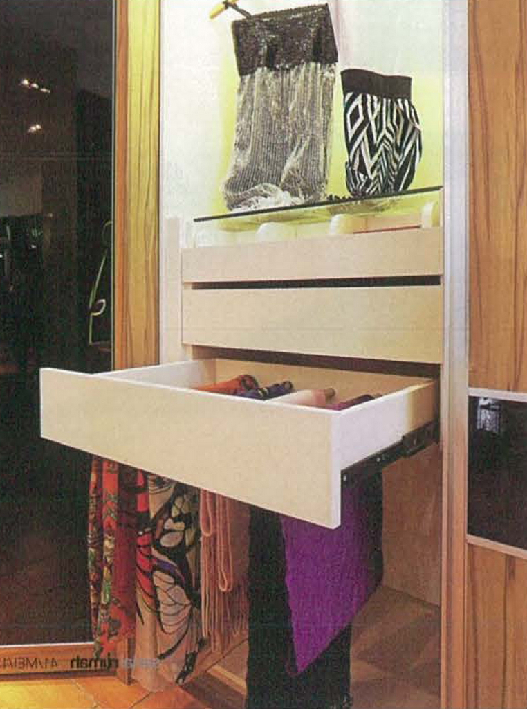 - Drawers with partitions are ideal storage places for small objects, such as neckties, socks, and handkerchiefs. Some perfume and cosmetics supplies are also stored here.