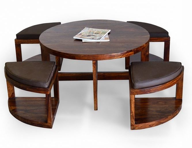 Coffee table with chairs underneath are a nifty little option when there’s a have to be space-savvy. The brilliant designs in the choice below allow concealing the chairs under the table so as to enjoy more free space around. Check the illustrations below.