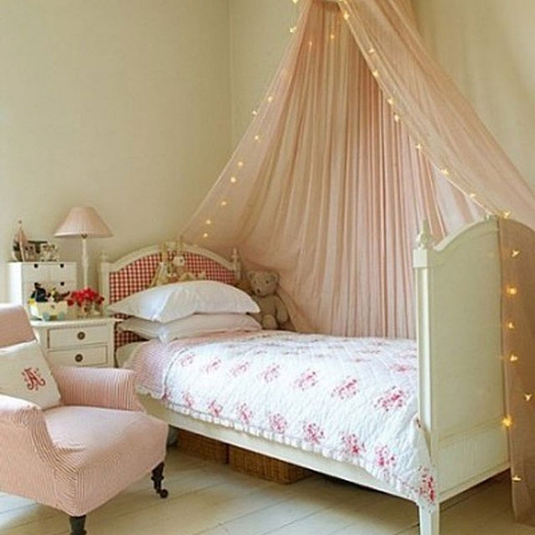 To add the beautiful glam, you can hang the canopy using lamplight. Attach the large L bracket to the wall behind your bed and insert the pendant chain through the canopy. Then, hang the canopy and pendant from the brackets. For safety, be sure to use an LED bulb that has a cool touch system. Also, make sure the light for your kid’s bed tent canopy is away from the fabric.