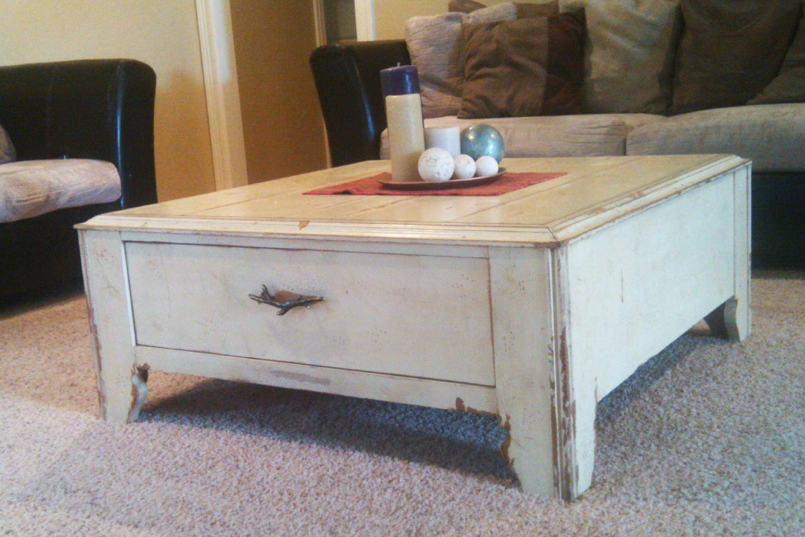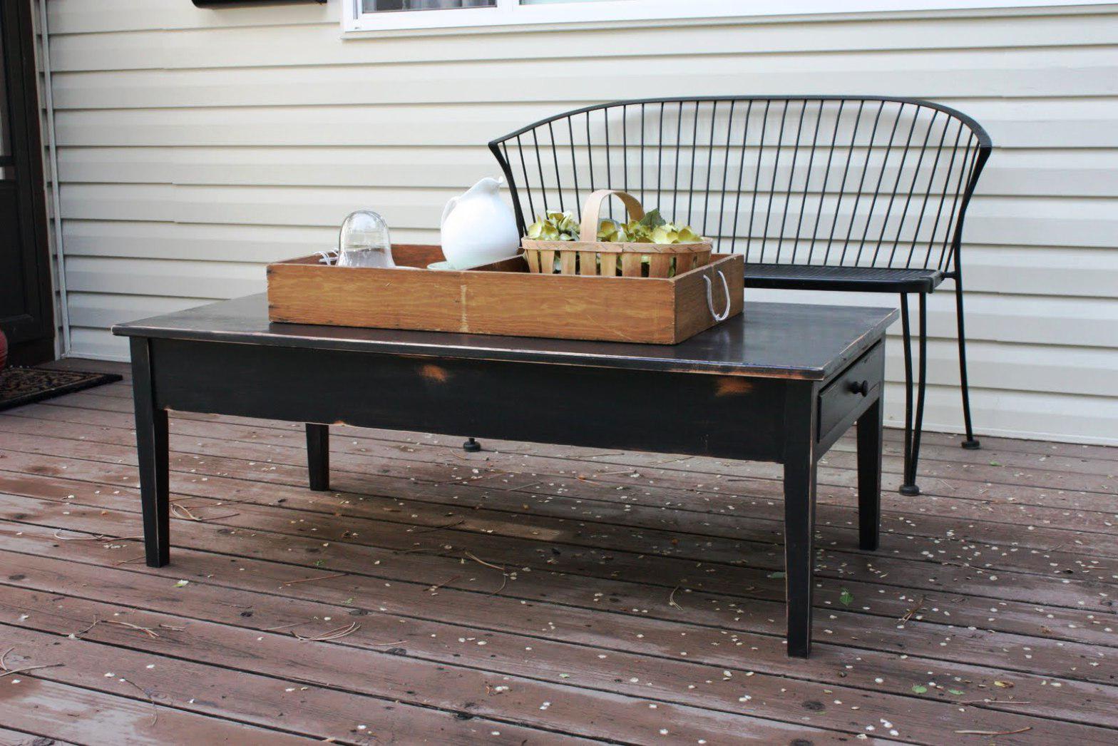 Put in a touch of functional pastoral attraction to your space with this distressed dark wood coffee table that is topped with the basic look of real wood end. Handmade with strong and artful structure, this handsome part is a favorite for a long time to come.