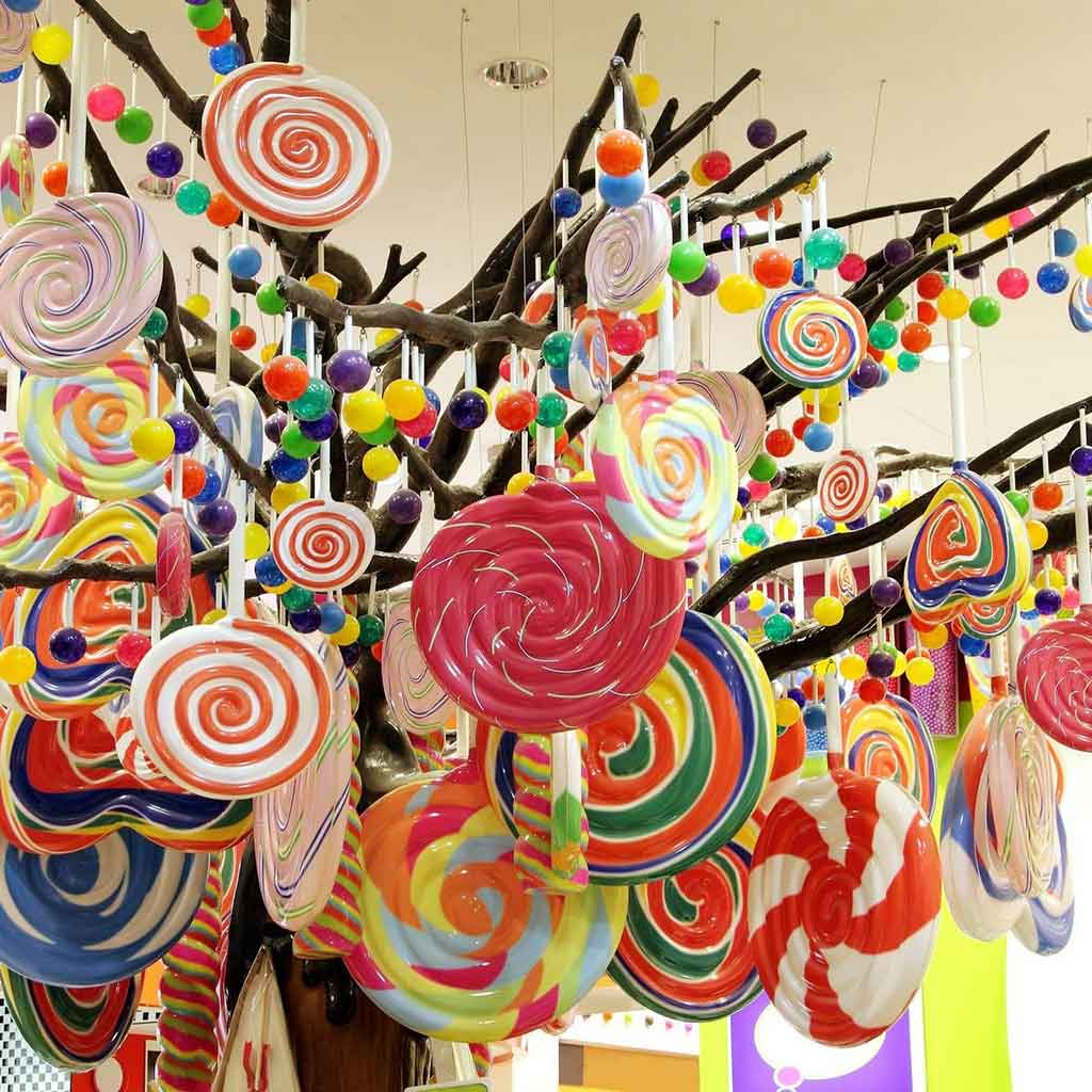 You can use both the marshmallow and gumball Candyland decorations with a glue gun. For better results, use a twisted piece of floral wire as a hanger. Besides that, you need to hang it onto the foam. Then, add a bit of hot glue to tighten it. Cover the Styrofoam ball with candies using your glue gun. To make a fancy style, you can use glitter spray on the gumball ornament.