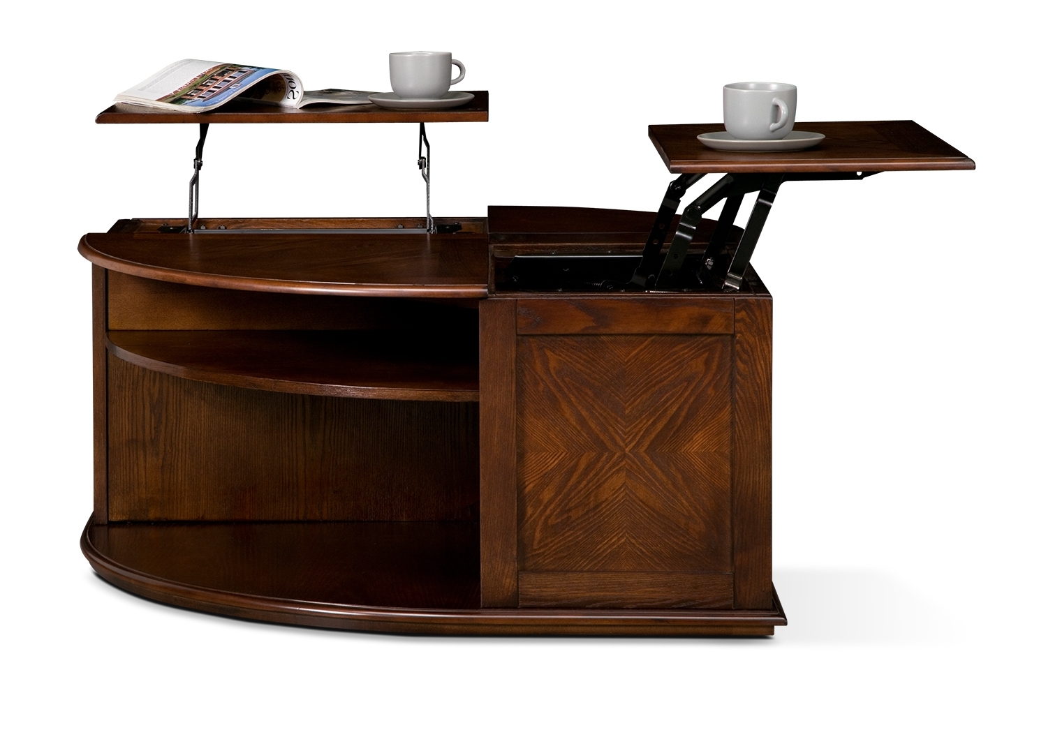 Round out a contemporary seating bunch with this streamlined progressive daytona double lift top coffee table in regal walnut, created from birch wood and highlighting a shrouded stockpiling compartment. Its twofold lift-top plan is perfect for serving starters and beverages at your next social gathering.
