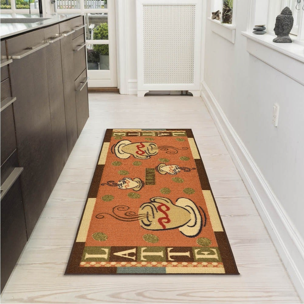 The next thing that you should not forget to decorate is your floor. You can put a coffee themed picture rugs in your flooring. A rug with a picture of coffee beans or some cups of coffee will be good. If you cannot find a rug with coffee-related pictures, then you can go with the basic color scheme, which is brown, or greenish-brown that resembles coffee and coffee beans. Thus you can complete your dream of coffee kitchen decor theme.