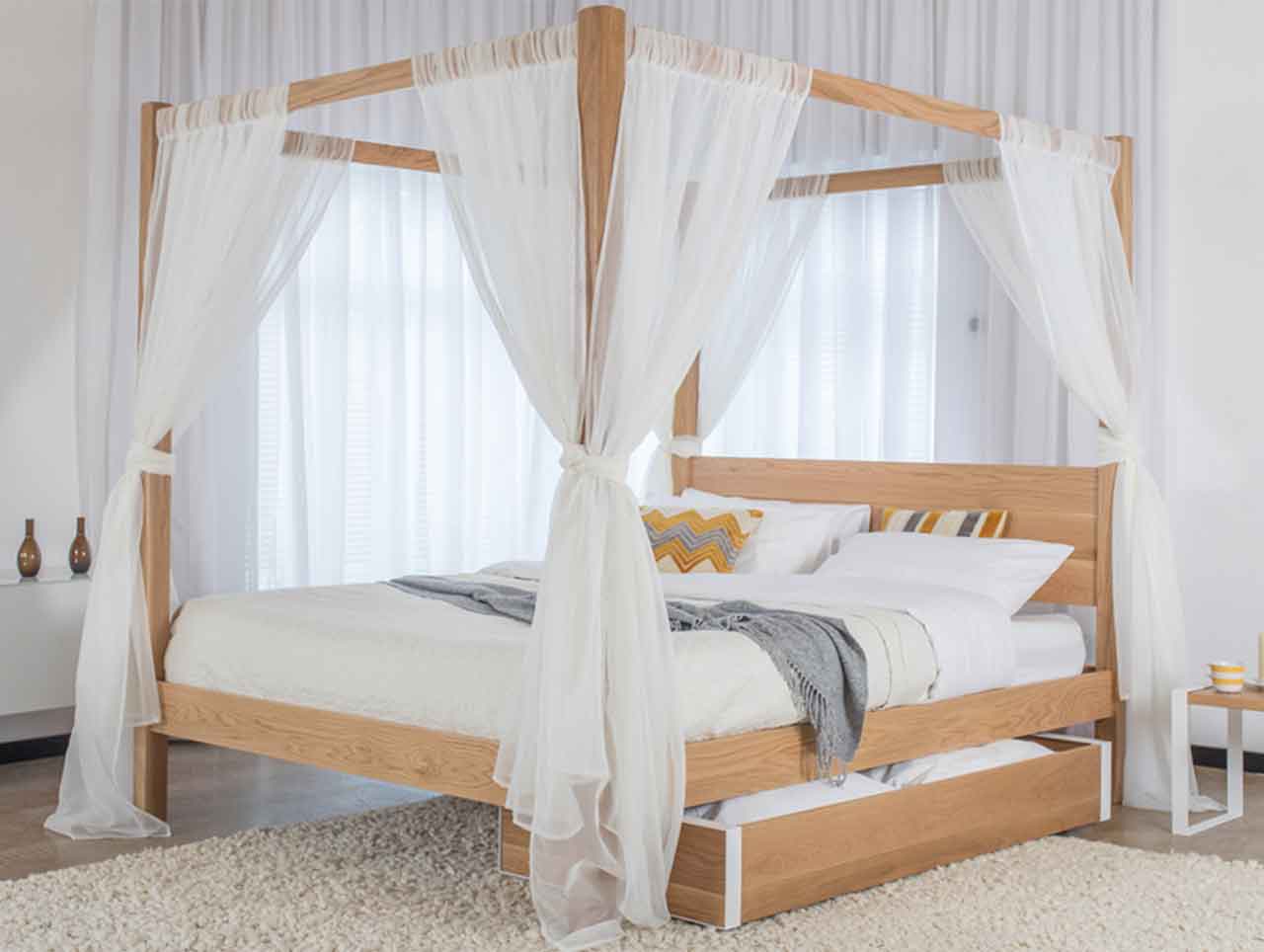 Four-poster beds evolved from the canopy beds also known as tester beds, which used to create warmth and privacy. Curtains originally hung in the ceiling, but transformed into frames to add the bed support and overhead canopy. It is also best to help have four poster bed canopy curtains in terms of heat retention. Later on, you can place fabrics on each side of the canopy in your bedroom