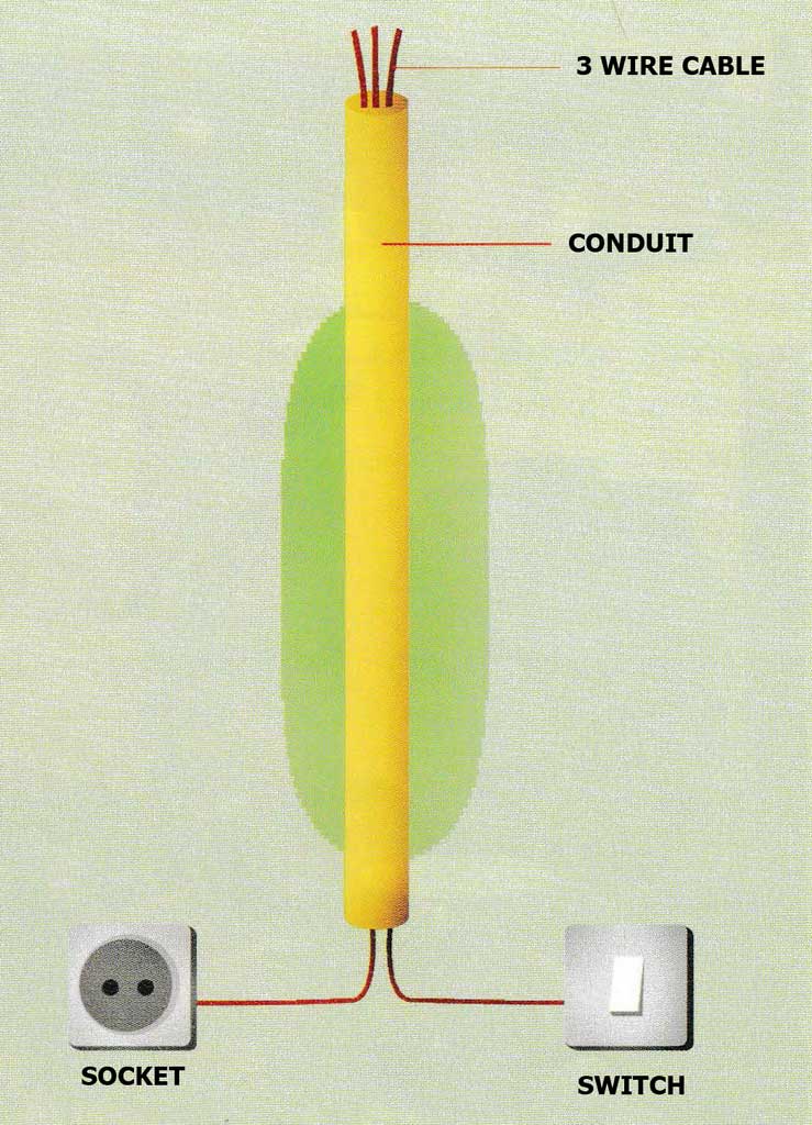 Install the switch and socket in an adjacent position, so that in 1 conduit pipe can be inserted 2 installations at the same time (switch installation and socket installation).