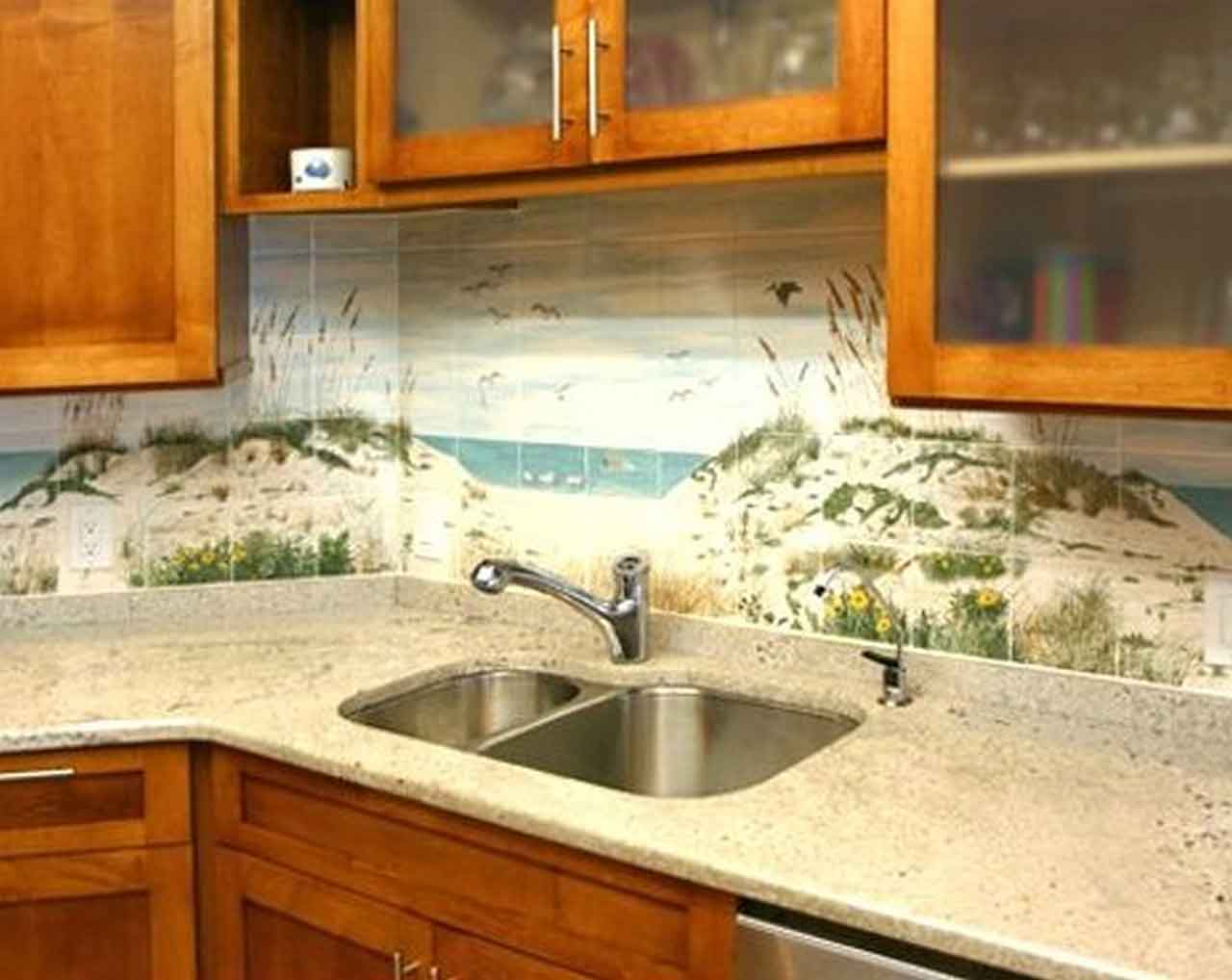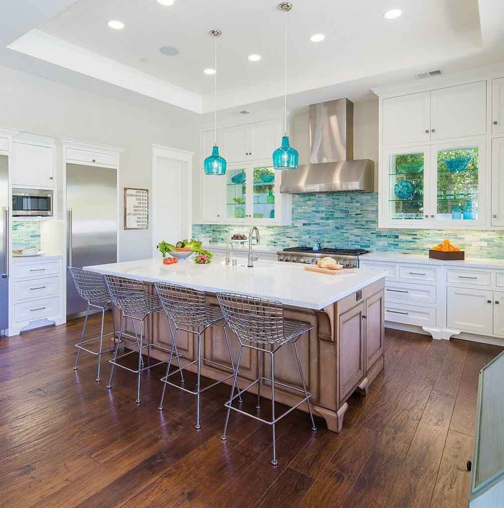 A patterned or colorful backsplash can be the main object in your kitchen space. You can install the beach theme in your kitchen to create a backsplash full of character. There are many different material and colors to consider. Generally, they come in shades of blue, grey, green and tan for ocean wave’s vibes. Besides that, you can use the various stone to make a mosaic design.