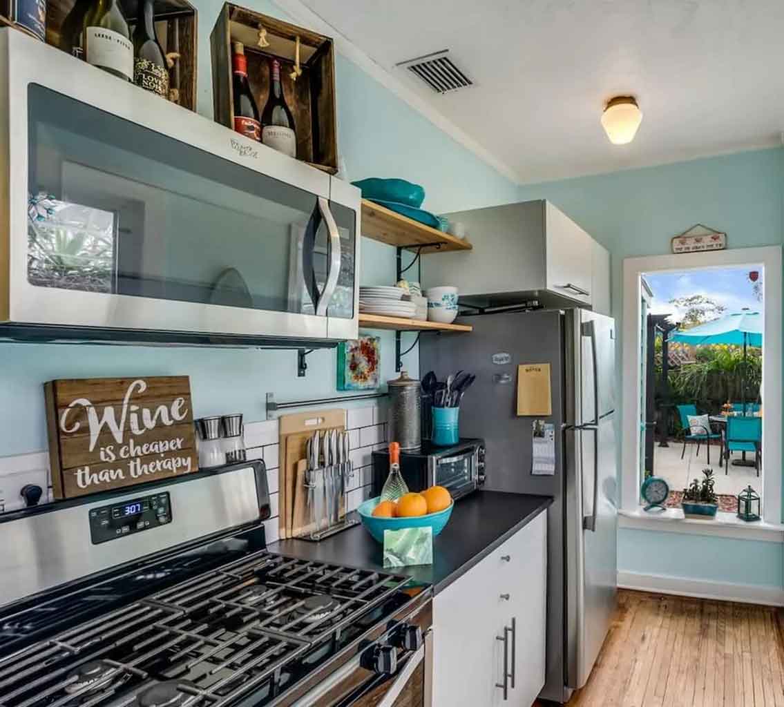 Do you want to make a pop of color? A colored appliance is an excellent way to add color into your kitchen. It is one of ocean themed kitchen decor that has a simple scheme. Use a retro appliance can transform your beached-themed kitchen to become shabby chic cottage with additional colors such as blue mint green, grey, turquoise, and classic white. Modern stainless steel will also add an outstanding style.