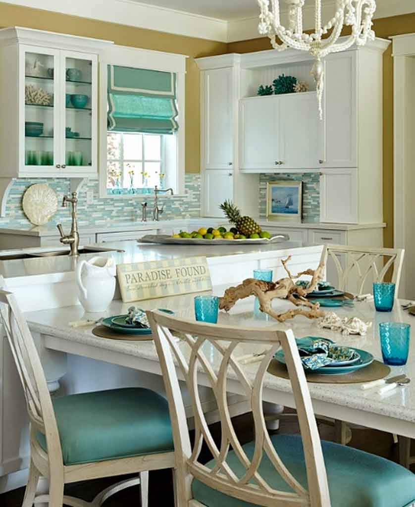 Is it right to add beach kitchen with a wooden accent? Of course, you can use wood ornament into your furniture in your kitchen space. Many ocean themed kitchen decors combine the look of wood as the primary option. However, if you already have wood furniture in your kitchen better, you keep the originality of the tone from the wood. But, if you want to have a modern beach kitchen, polished wood cabinet is great to add new look ocean theme.