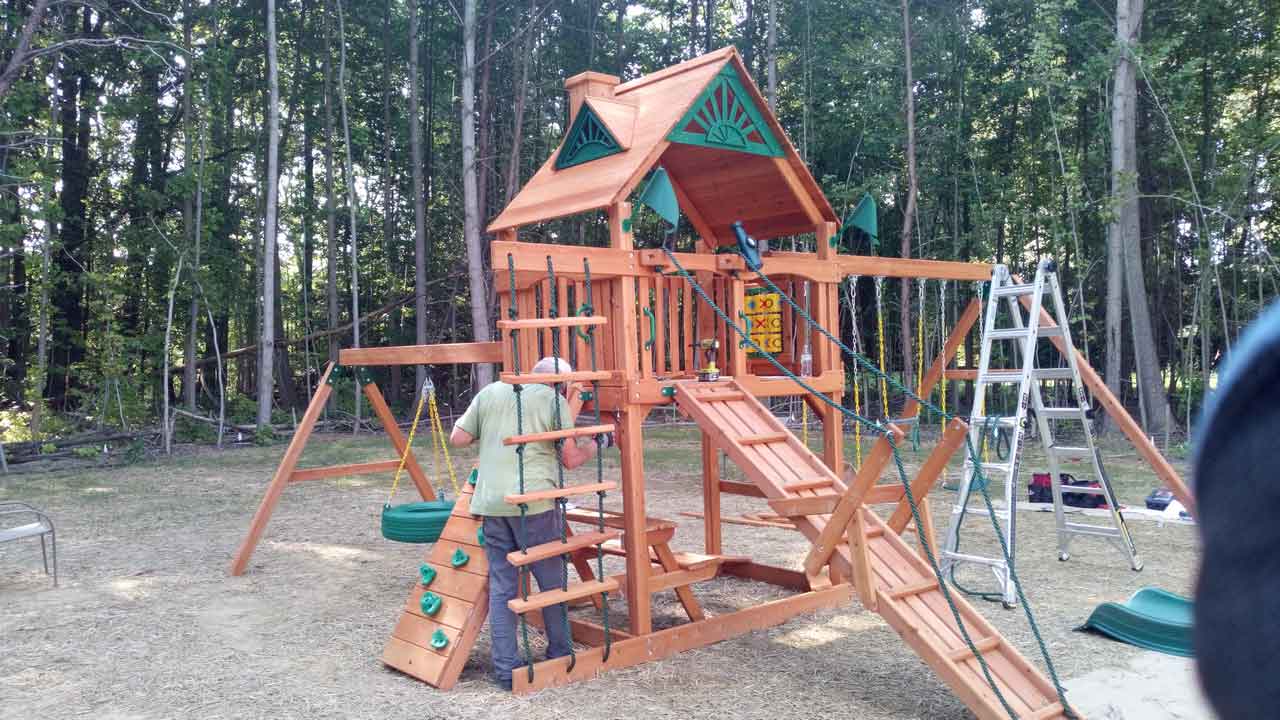 It is easy though to put together. Place the set on level ground, not less than six feet apart from any structure or obstruction such as house, fence, house, overhanging branches, electrical wires even laundry lines your option are endless. Indeed, the guidelines recommend you to make playsets in the safety zone to prevent the damage. Tools required also explain the instruction inside the product makes you easier to prepare.