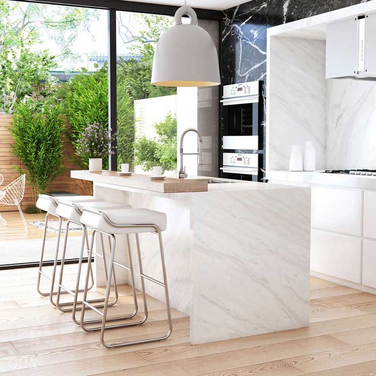 Next, you need to pair with counter stools at 24″ – 26” high. It is because white contemporary bar stools pair best with exteriors that are 36” off the ground. It is the standard height of kitchen counters and islands, so this type will work boundless for your dining areas. If you are looking at standard bars, you can choose around 42” high, and bar stools height is around 30”.