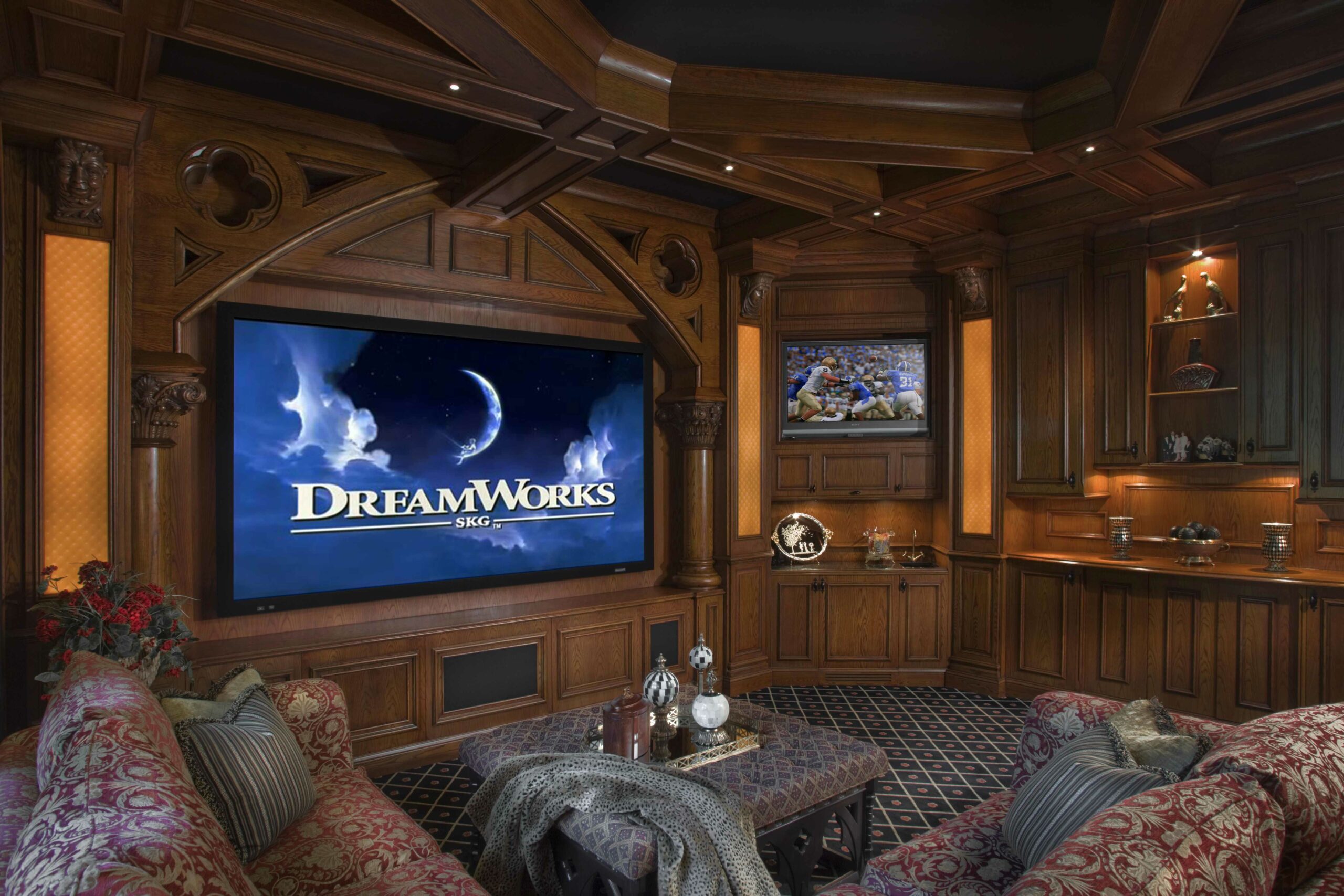 The main requirement for living room theaters is ample space. You will need all the space you can get to maximize the seating area to watch the movie. Before selecting the furniture and decoration you need for such concept, it is important to measure the dimension of living room interior. Once you get proper measurement of the living room dimension, you can start calculating what it takes to create pleasant living room with theaters concept.