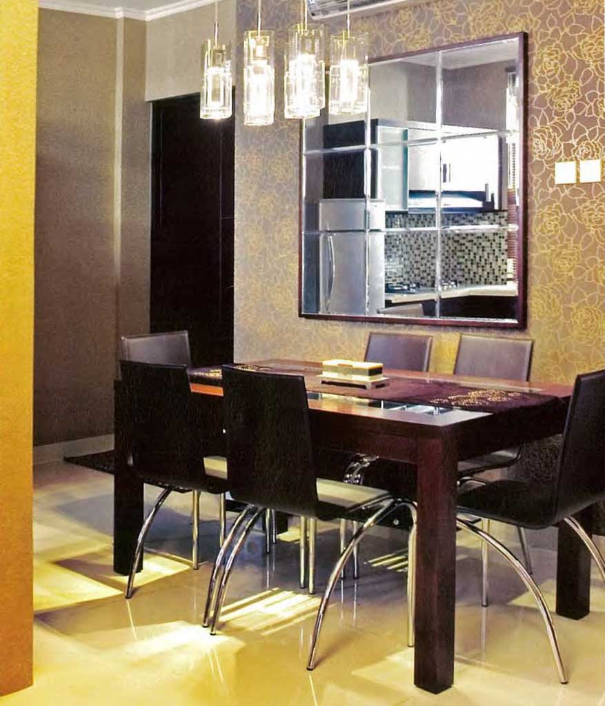 Another consideration is the ceiling that is wide and painted in white color. White paint will neutralize the room. In this way, the dining table and mirror will appear strong and not make the room more crowded. Dare to try it?