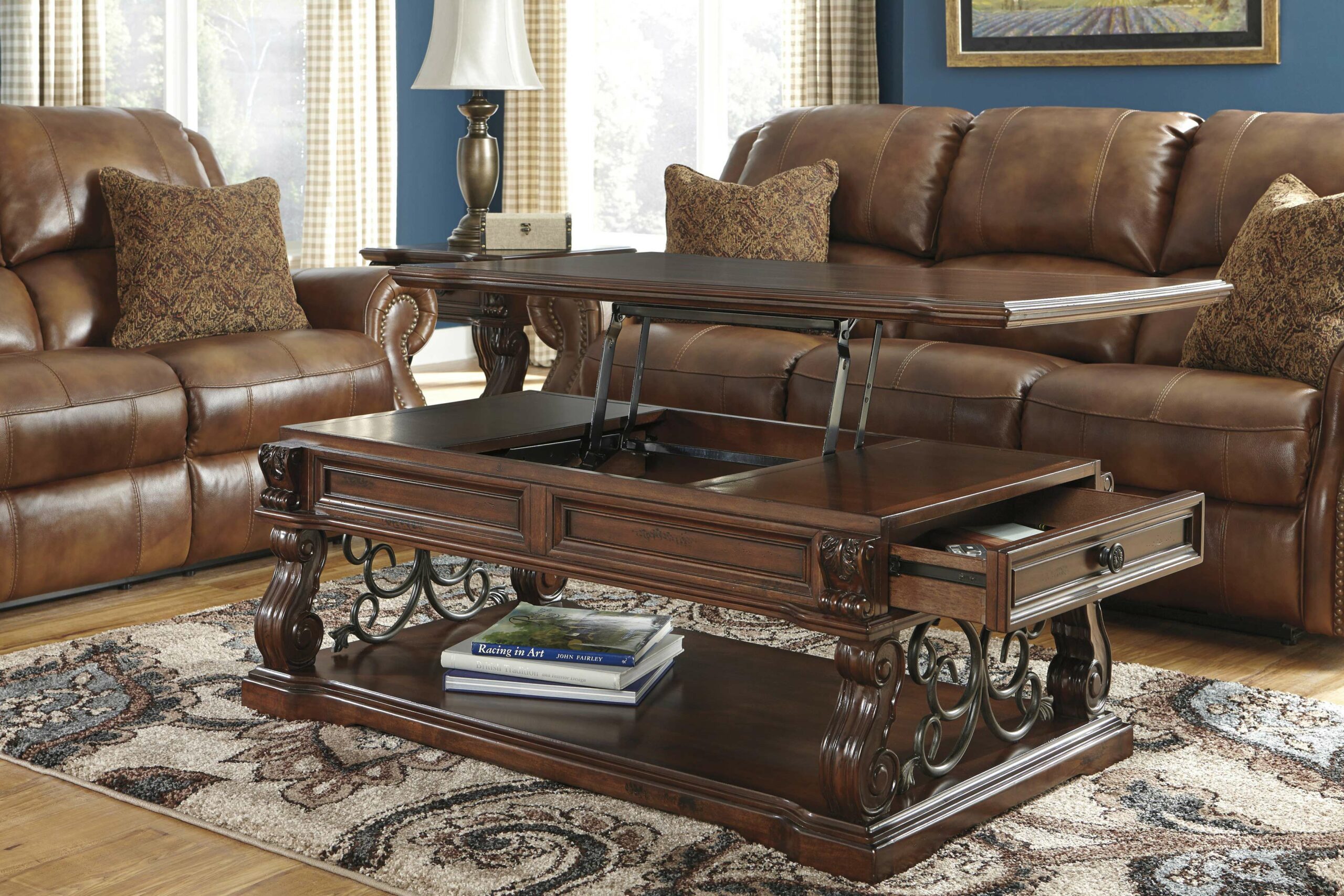Resembling change of the hundred years campaign furniture, lift top coffee table Ashley furniture is a delicate nod to English Colonial style. Cleaned end and weathered steel details strengthen the old-fashioned vibe. Lift-top features makes eating and employed in entry of the tv set a breeze. Open up cubby and lower drawers offer considerable storage space.
