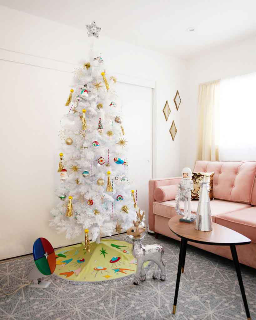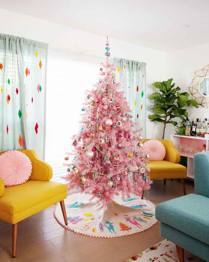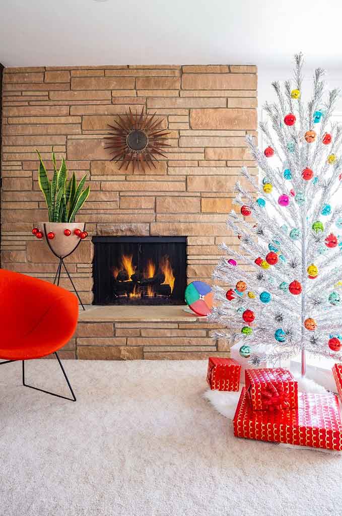 As the focal point of your holiday decor scheme, the Christmas tree is an excellent place to express your love of Mid-Century Modern design. This tree is ready to make your home appeal more aesthetic. Playing on the bold themes for the tree with aluminum or tinsel in sticking colors. The colors such as fuchsia pink. silver, white, cobalt blue will add a stylish touch to your decorations.