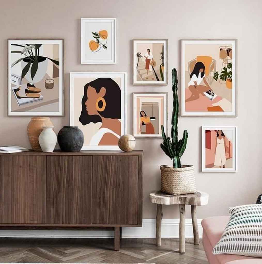 Wall art that classifies as the Mid-Century Modern category often transforms from geometric shapes into curves or waves. Also, they may have an abstract look with some fancy jagged edges and an artsy roughness. Sometimes they’re just plain kitschy, featuring modernist images like stylized fish.