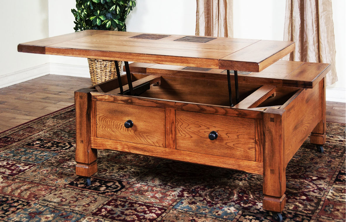 Mixing natural style with customary plan, this pull out coffee table is the ideal emphasize on the off chance that you need to imbue your space with a touch of cabin commendable interest. The twofold “X” side accents and metal corners are done with an antiqued press tint for a spot of vintaged style, and planked top exhibits a rich, multi-step vintage fiery remains complete for rural interest. Likewise highlighting a lift top outline with shrouded inside capacity, this pull up coffee table conveys both style and fundamental capacity to your home. Have a go at setting it at the focal point of your lounge room for the ideal place to rest a plate of newly blended beverages or some chamomile tea, at that point, work off of the natural look by including a wooden plate, a bowl of woven spheres, and a trio of pine-scented candles. For an integral troupe, pull up a dark colored calfskin couch and reveal a cowhide-roused floor covering.