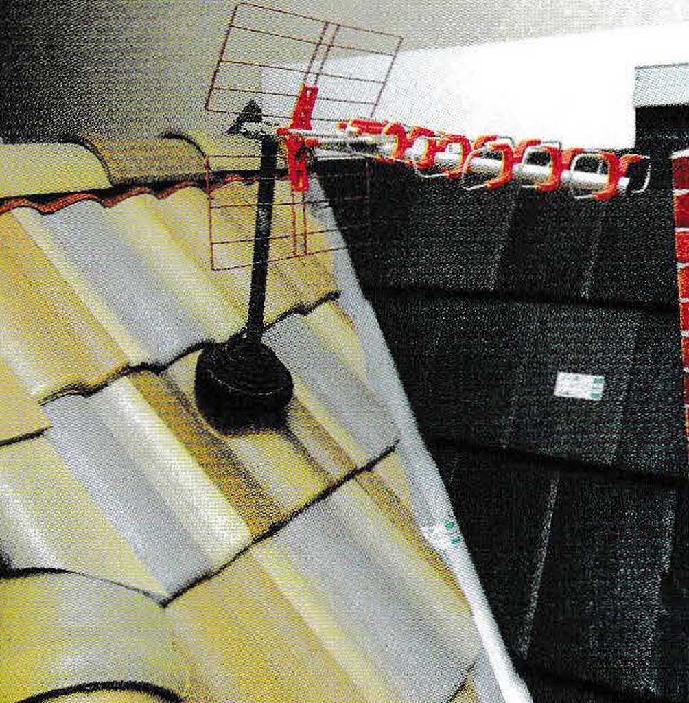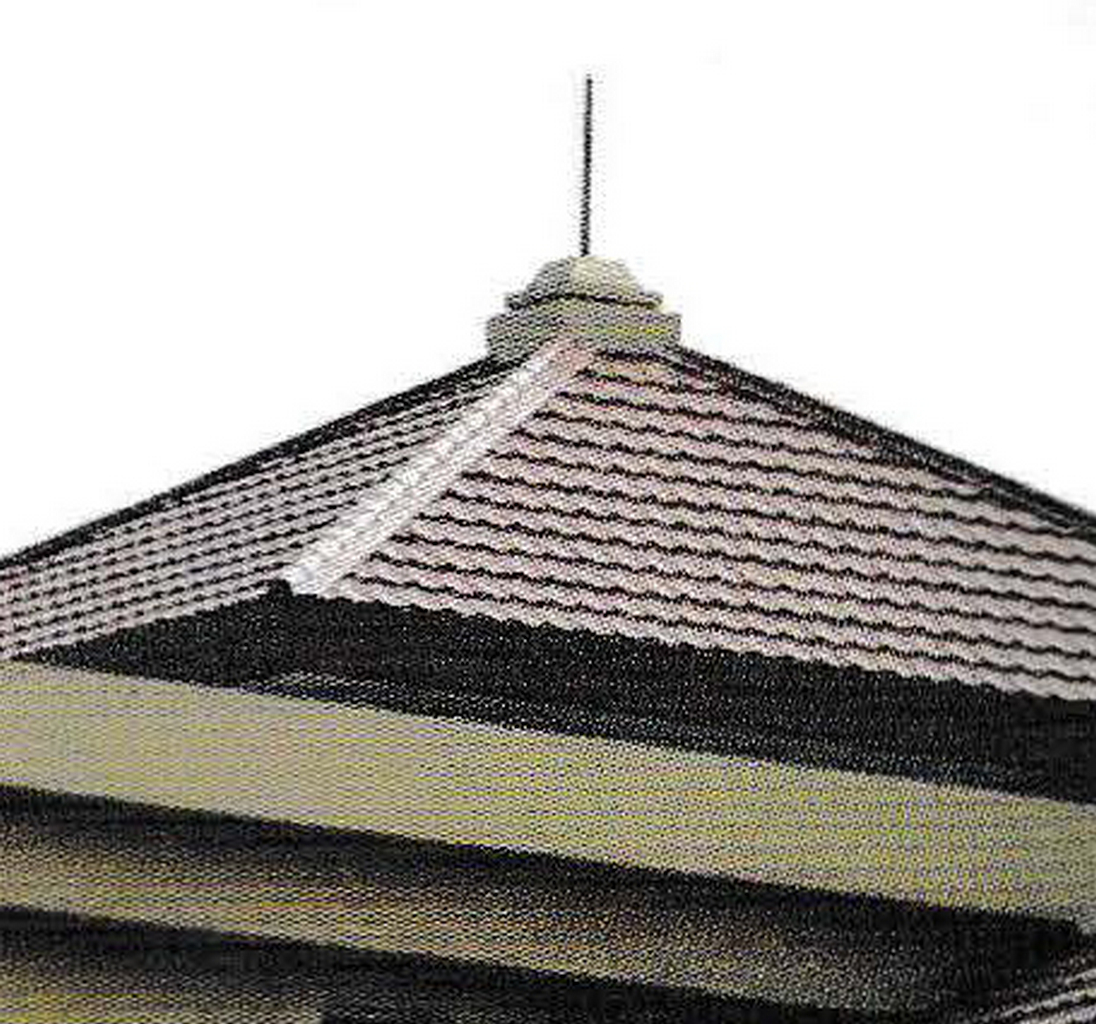 Can be purchased separately or one package with other roof tiles. Mounted at the top of the roof to deliver excessive electricity from lightning into the house. The roof looks neat by applying this accessory. Some manufacturers produce it in the form of ridges with lightning rods that are directly installed.