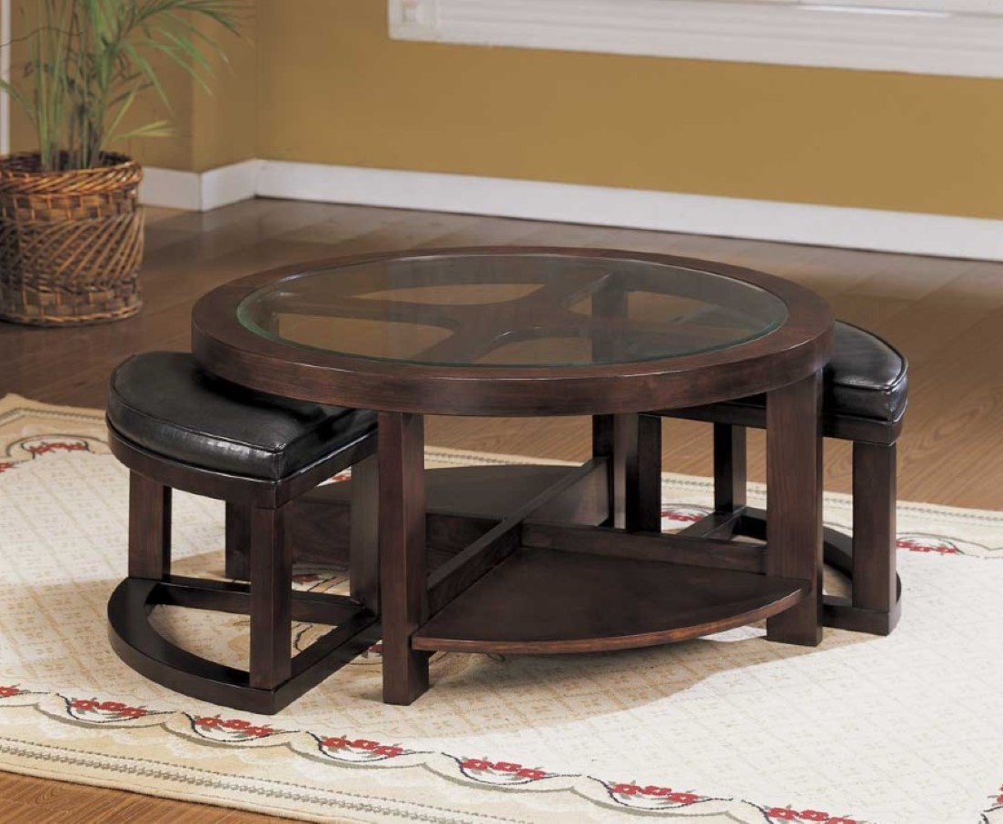 With ample space for storage inside these stools, you can also store your cushions, blankets, or other basics. Using its strong and strong pedestal bottom part, this round coffee table with seating provides resilient durability. A concise yet gorgeously designed table place; the round coffee table with pull out seats will enhance your interior decor with its visual appearance and functionality.