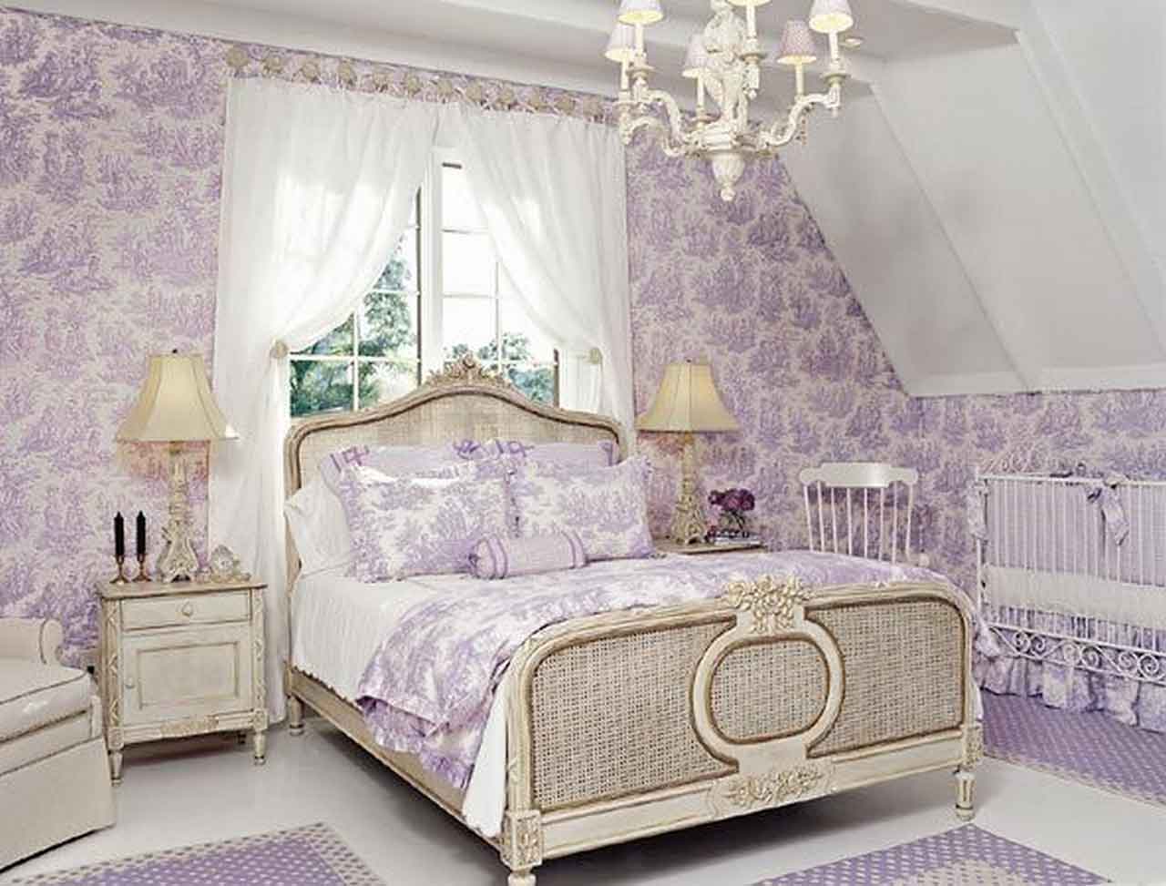 If you have a small bedroom, you can use a lavender purple color. Make your bedroom walls with the color of clean white first, after that you can create lavender color for your bed and items such as pillows, tablecloths, mirror frames, and others. Your room will look more spacious if the arrangement is perfect. keep the other things that you have been longer not use. And your purple shabby chic bedding decor will look good in your small room.