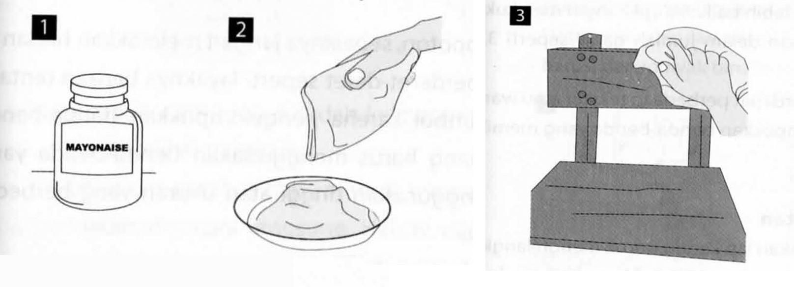 - Use plain mayonnaise to scrub stained furniture. Rub it with a bit strong. After drying, rub it again with a clean cloth.