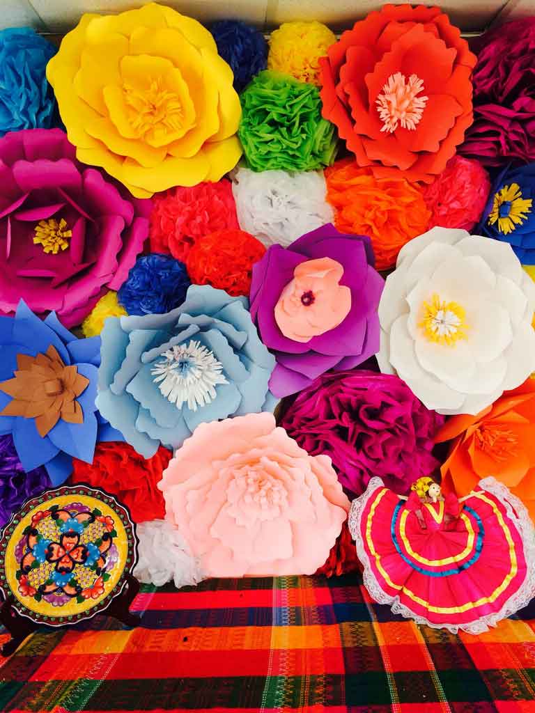 The next idea that you can try is making some giant fiesta paper flowers. Get ready for your celebration by adding a bunch of bright paper flowers. You can make Mexican themed party decorations with several sheets of tissue paper that are gathered together in a large size. Plus, add color schemes such as red yellow, purple, etc. They can be hung around a door frame with tape or on your wall.