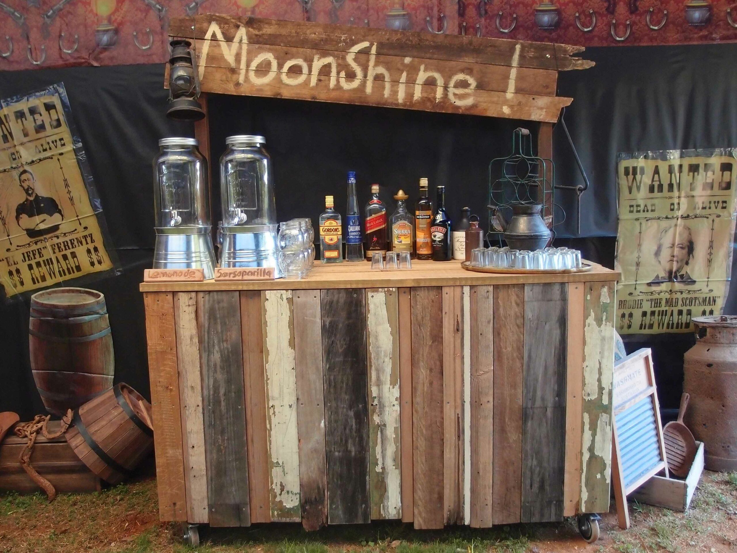 A bar area is one of the locations that people will gather. To show your specific theme put many decorations in this area. You can put a mini hay bale, rifle lighter, fake guns, cowboy boots or hats, etc. While you can also serve the drink with a bandana tied in the mason jars. Put some cactus vase. Hang a string of bandana, light sprinkling confetti, a sheriff badge. You can liven up the country themed party decoration with some string light on top of the bars and other sparkly decoration.