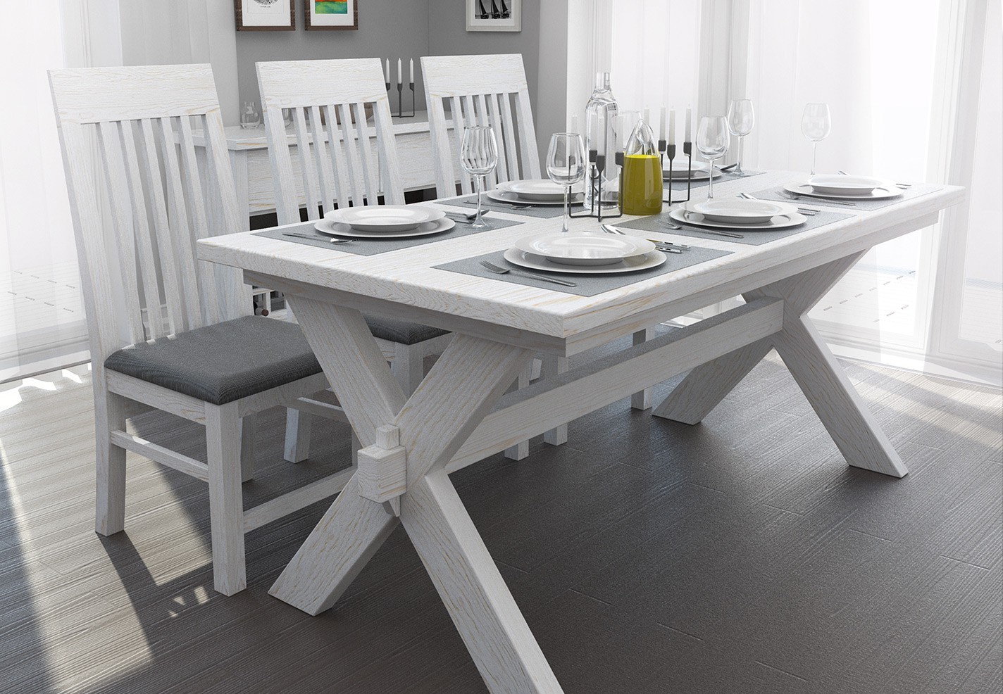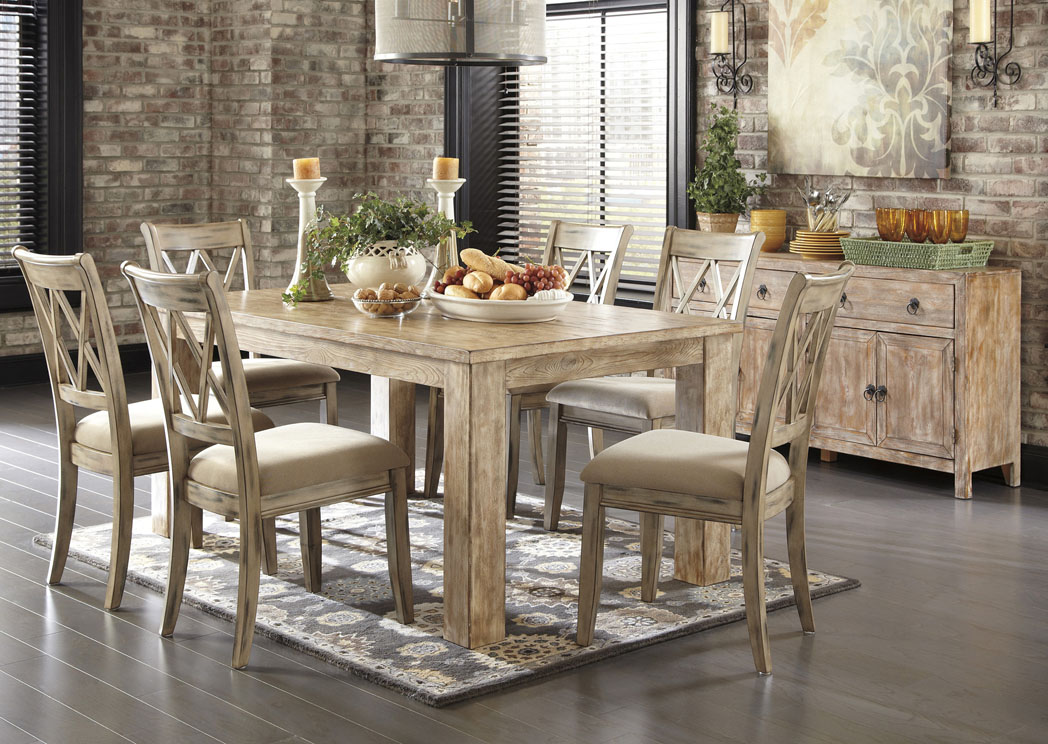 White Wash Dining Room Table Furniture Set