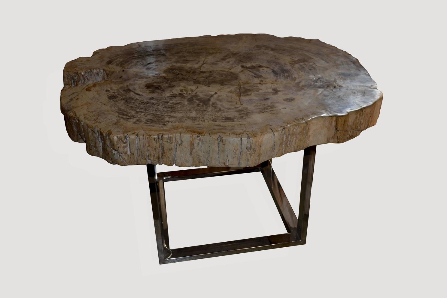 This stunning wood slab coffee table for sale was created from an individual 6 ft., 2″ thick slab of reclaimed walnut. One end of the table was presented with the “waterfall” impact that effectively goes on the slab down at a 90 level angle to make a calf that seamlessly showcases the natural grain of the solid wood. What makes this specific table unique is an antique of couple of buttressed chrome lower legs that provide the table a nice architectural cosmetic. The waterfall end of the table was constructed by using a mitered dowel joint guaranteed by a sculpted walnut bracket that continue the organic and natural look and optimal sturdiness. Solid wood surface has been stained and done with semi-gloss water-based polyurethane. A really unique live edge coffee table that will then add natural refinement to any room!
