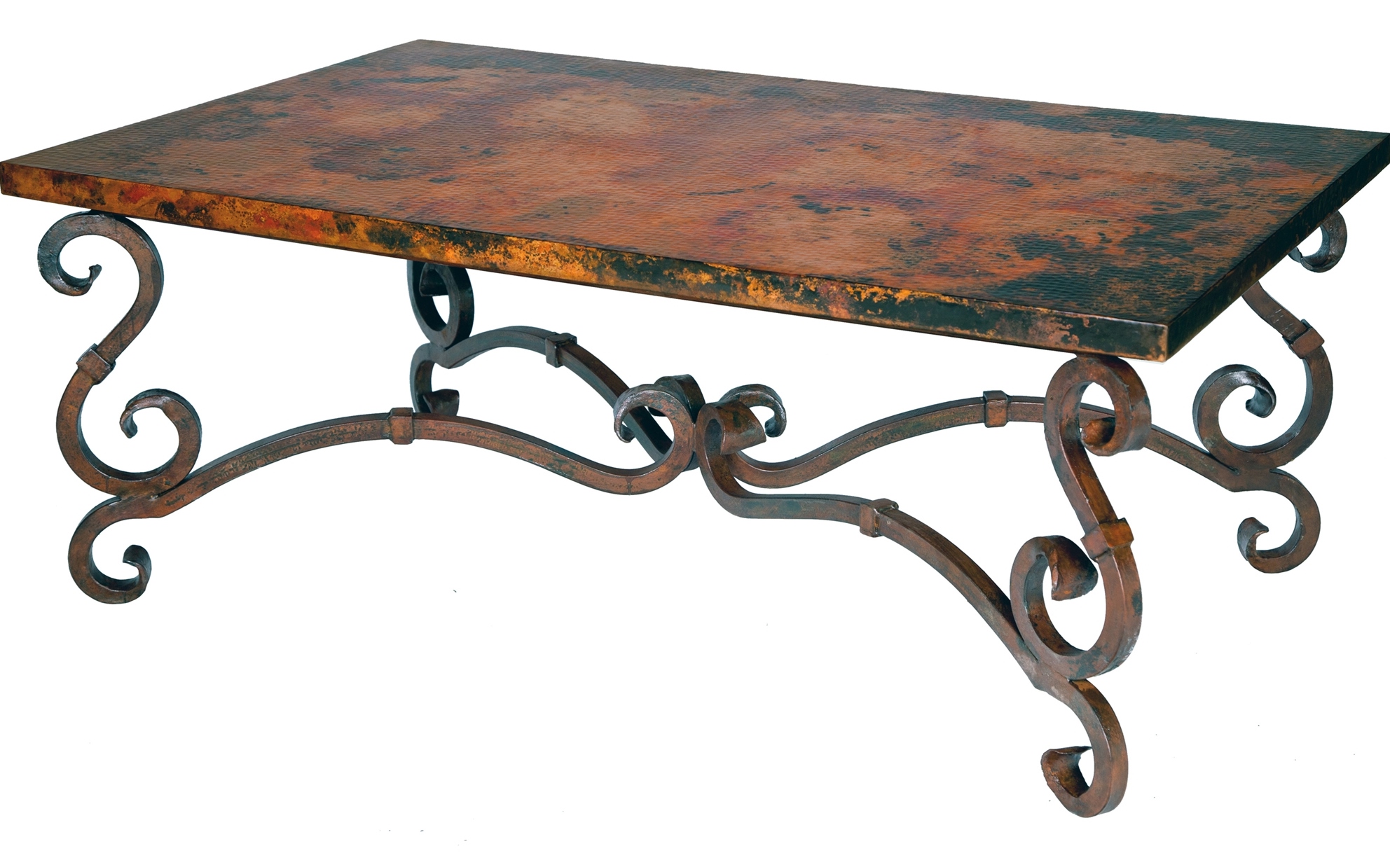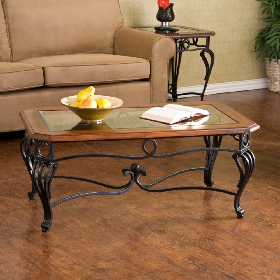 Wrought Iron Coffee Table with Wood Top for Rustic Living Room Style